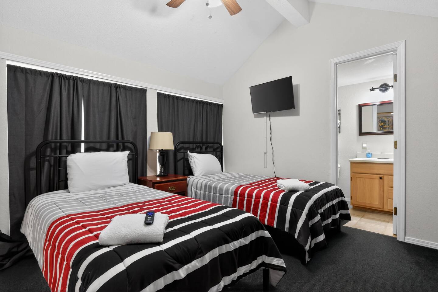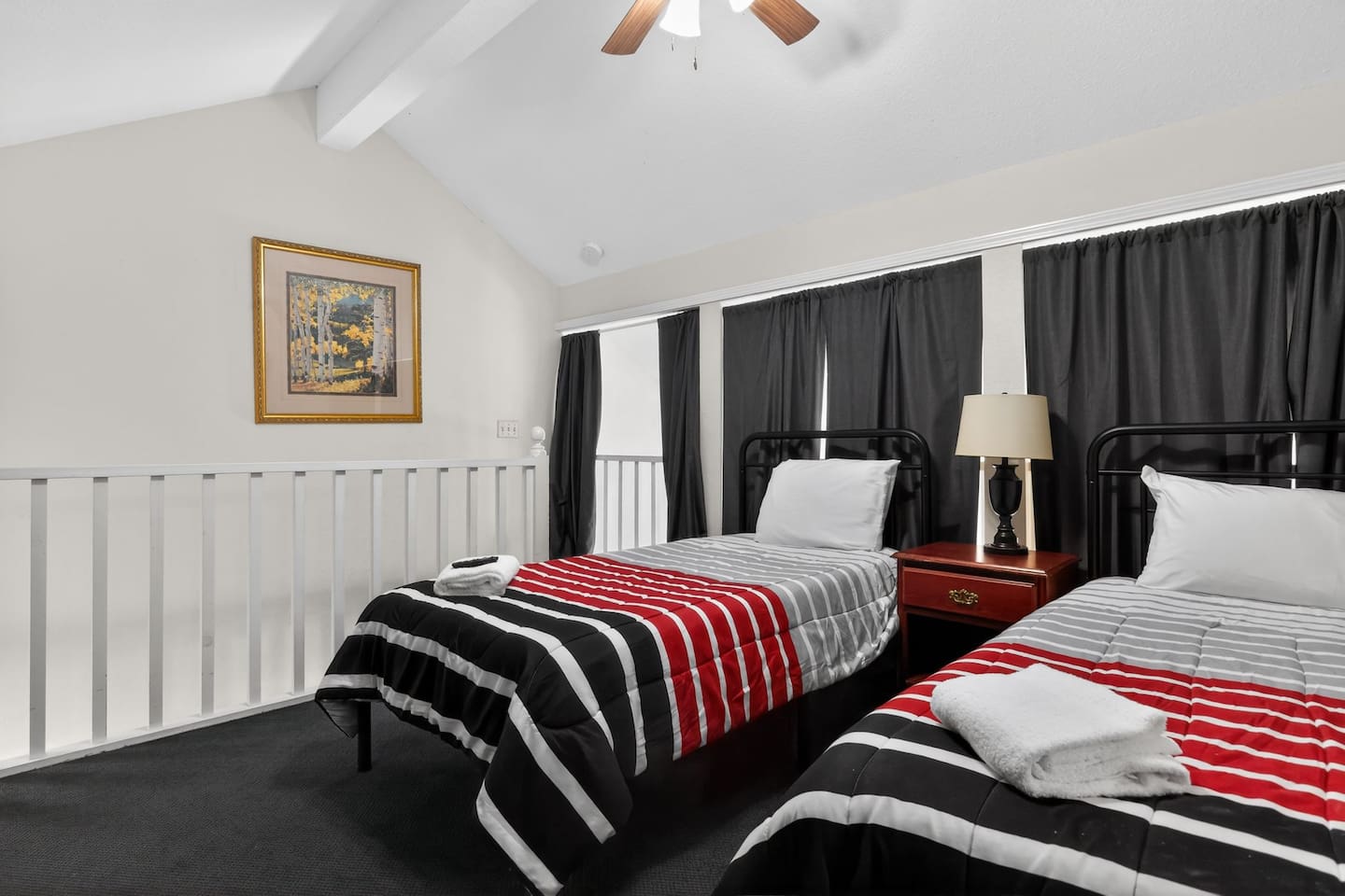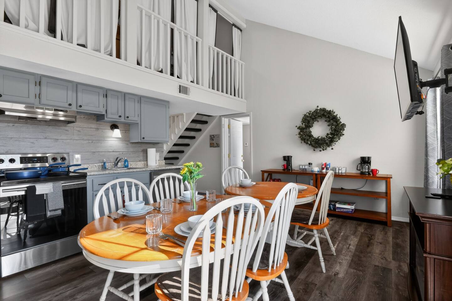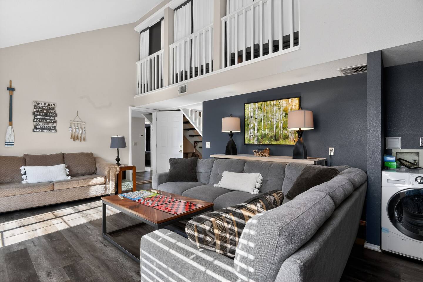 ★ Bedrooms & Sleeping Arrangements ✔ Perfect for Families & Groups ★ 4 Bedrooms | 7 Beds | 4 Bathrooms | 1,740 sq ft ★ Master Suite #1: ✔ King bed with views of the Fall Creek Resort ✔ Extra soft linens, blankets, and plush pillows ✔ Roku Smart TV in the room ✔ Walk-in closet with ample clothing storage ✔ Direct access to master bathroom with his-and-her sinks, towels, soaps, and hairdryers ★ Master Suite #2: ✔ Queen bed with views of Lake Taney Como ✔ Extra soft linens, blankets, and plush pillows ✔ Roku Smart TV in the room ✔ Walk-in closet with ample clothing storage ✔ Direct access to master bathroom #2 with his-and-her sinks, towels, soaps, and hairdryers ★ Twin Room #1: (Upstairs) ✔ Two twin beds with views of the kitchen and dining area ✔ Extra soft linens, blankets, and pillows ✔ Roku Smart TV ✔ Vaulted ceilings and walk-in closet ✔ Private bathroom with walk-in shower ✔ Accessible via stairs, leading down to main living areas ★ Twin Room #2: (Upstairs) ✔ Two twin beds with views of the living room ✔ Extra soft linens, blankets, and pillows ✔ Roku Smart TV ✔ Vaulted ceilings and walk-in closet ✔ Private bathroom #2 with walk-in shower ✔ Accessible via stairs, leading down to main living areas ★ Additional Sleeping: ✓ Queen-size Sofa bed with fresh bedding ✓ Ideal for extra guests or family members ★ Kitchen & Dining: ✔ Fully equipped kitchen with oven, stove, microwave, blender, toaster, dishwasher, cookware, and utensils ✔ Deluxe coffee station with two coffee machines, creamer, sugar, and filters ✔ Dishes, glassware, and silverware for family meals, Panini Grill Maker, and a Crockpot Slow Cooker ✔ Dining area with seating for 6, plus additional seating available ✔ Roku Smart TV and cozy fireplace for cooking or entertaining ✔ Deck #1 access for outdoor dining or morning coffee ★ Living Room ✔ Two plush couches with throw blankets and pillows (one is a sofa bed with extra bedding) ✔ Cozy fireplace with soaring vaulted ceilings ✔ Roku Smart TV with Hulu & Disney+ for a fun Movie night on us ✔ Board games for family fun ✔ Washer and dryer in unit ★ Bathrooms ✔ Four full bathrooms stocked with towels, toiletries, and hairdryers ✔ Master suites have walk-in access to master bathrooms with his-and-her sinks ✔ Twin rooms have private bathrooms with walk-in showers ★ Self Check-In ✔ Keyless entry with flexible check-in and check-out times just ask! ★ Pet-Friendly (House Rules Apply) ★ Outdoor Spaces ✔ Two outdoor decks with seating and tables ✔ Family-friendly games like rope toss ✔ Scenic views of the Fall Creek Resort and Lake Taney Como ✔ Deck #1 accessed from kitchen, Deck #2 from living room ✔ Perfect for morning coffee, dining, or evening relaxation ★ Walk to Fall Creek Marina ✔ Just a short walk (about 2–5 minutes) to the marina and lake access ✔ Lake Taney Como access ✔ Boat rentals & slips ✔ Trout fishing + guided trips ✔ Kayak & small watercraft access ✔ Fishing dock & shoreline access ✔ Scenic waterfront views & walking paths ✔ Calm, peaceful waters ★ Local Attractions (Minutes Away) ✔ Silver Dollar City: 10 min – rides, shows, and Marvel Cave ✔ White Water Water Park: 12 min – slides, lazy rivers, seasonal fun ✔ Titanic Museum: 15 min – immersive exhibits ✔ Hollywood Wax Museum: 15 min – celebrity photo ops ✔ Wonderworks: 15 min – interactive science fun ✔ Branson Landing: 15 min – waterfront dining, shopping, and fountain shows ✔ The Butterfly Palace: 12 min – rainforest & butterfly exhibits ✔ Showboat Branson Belle: 15 min – scenic lake cruise & entertainment ✔ Shepherd of the Hills: 12 min – historic homestead, scenic views & zipline 📩 Message me directly for seasonal deals, extended stay discounts, or last-minute offers!